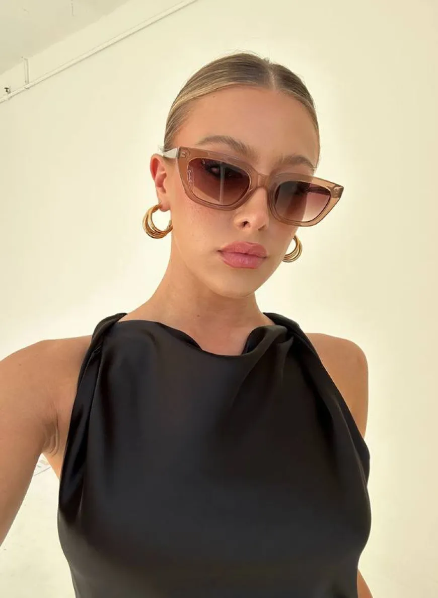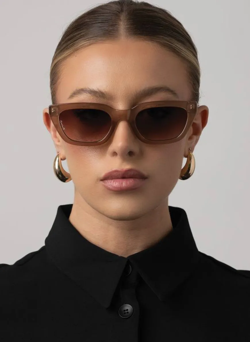 Nove er et par smale cateye solbriller fra Otra Eyewear. Solbrillene tilbyr en sofistikert og moderne look med sine gjennomsiktige kaffefargede rammer og brune glass. Nove-modellen gir utmerket UV-beskyttelse og passer til alle ansiktsformer. Disse solbrillene er både lette og komfortable, ideelle for daglig bruk. Enten du er på stranden, i byen eller på fottur, er Nove solbrillene det perfekte tilbehøret for å beskytte øynene dine samtidig som du ser stilfull ut.