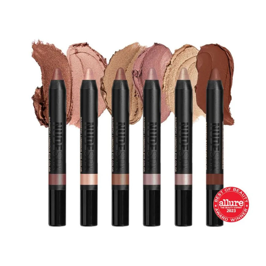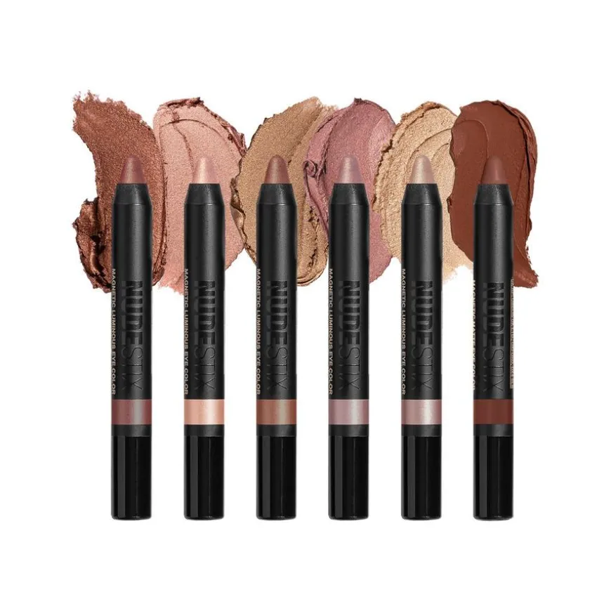 Nude Beach Eye Pencil Palette er inspirert av farger og teksturer funnet på sandstrender. Denne paletten presenterer nyanser som minnder omrike gyldne toner som gjenspeiler en varm sols refleksjon i vannet, samt delikate, lysende toner funnet inne i sjøskjell, i nude, gull, rosa, brunt, bronse og metalliske farger. Vegansk.
