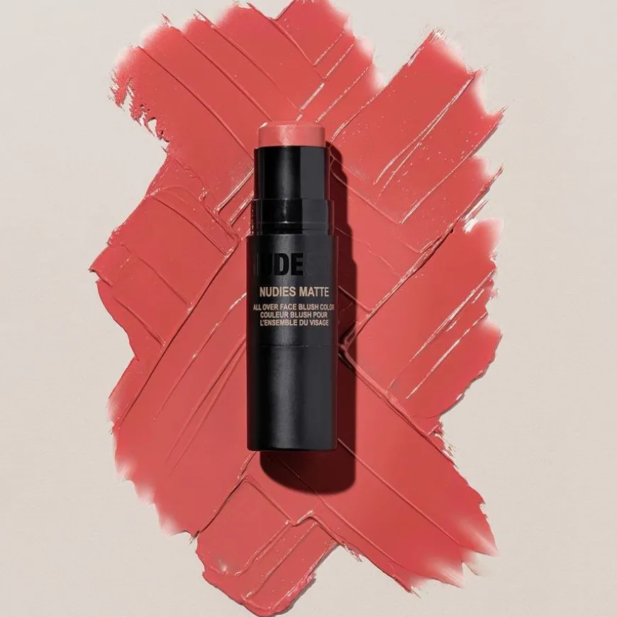 Nudies Blush Matte er en tosidig sminkebørste med myk fargebalsam i den ene enden og integrert blandingsbørste i den andre. Sminkebørstsen med den matte fargen kan brukes på øynene, kinnene og leppene. Kremen smelter på huden for å se naturlig ut. Fargene kommer i en rekke nøytrale toner, slik at du kan finne den nyansen du liker best.