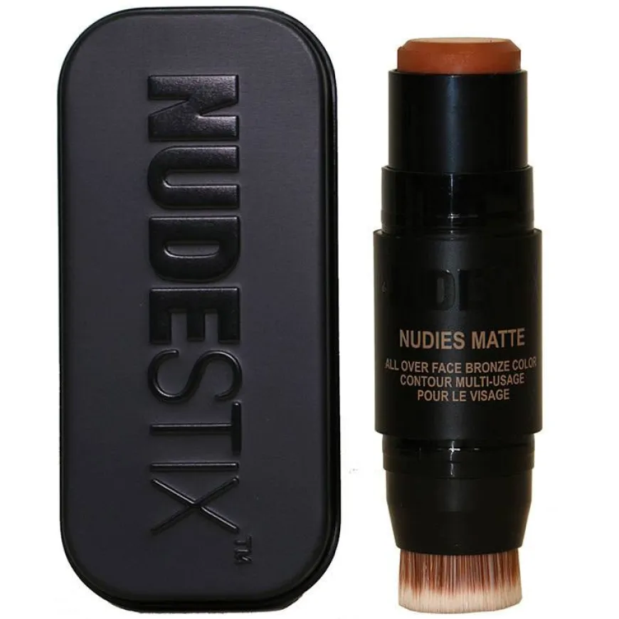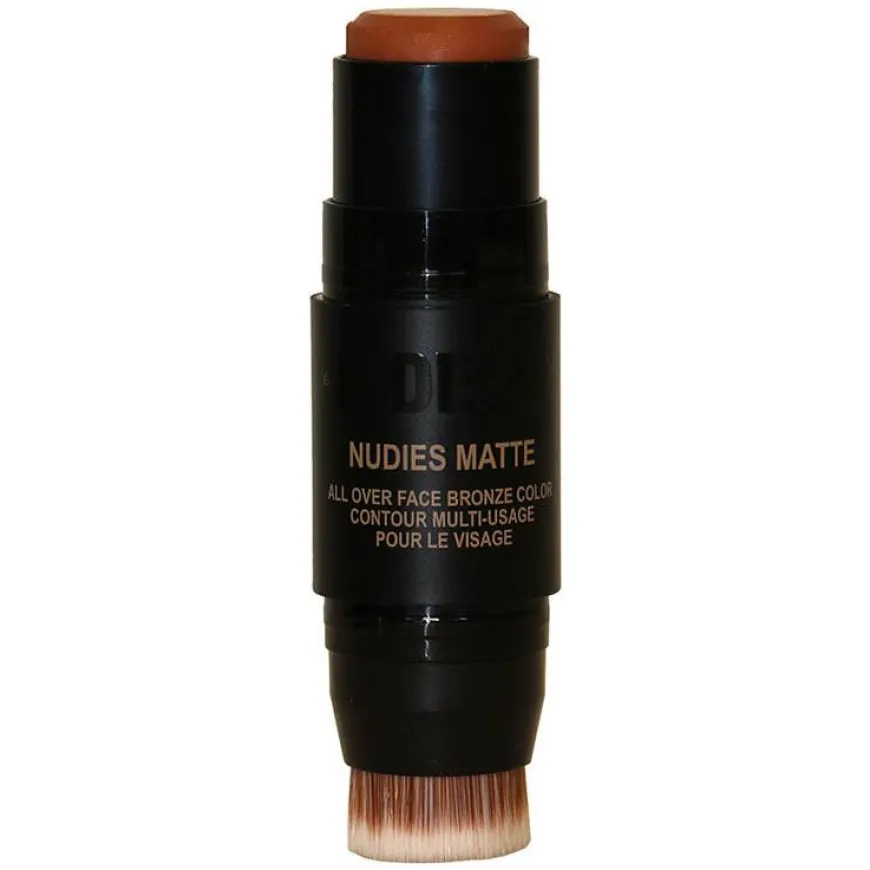 Nudies Bronze Matte er en tosidig sminkebørste med myk fargebalsam i den ene enden og integrert blandingsbørste i den andre. Sminkebørstsen med den matte fargen kan brukes på øynene, kinnene og leppene. Kremen smelter på huden for å se naturlig ut. Fargene kommer i en rekke nøytrale toner, slik at du kan finne den nyansen du liker best.