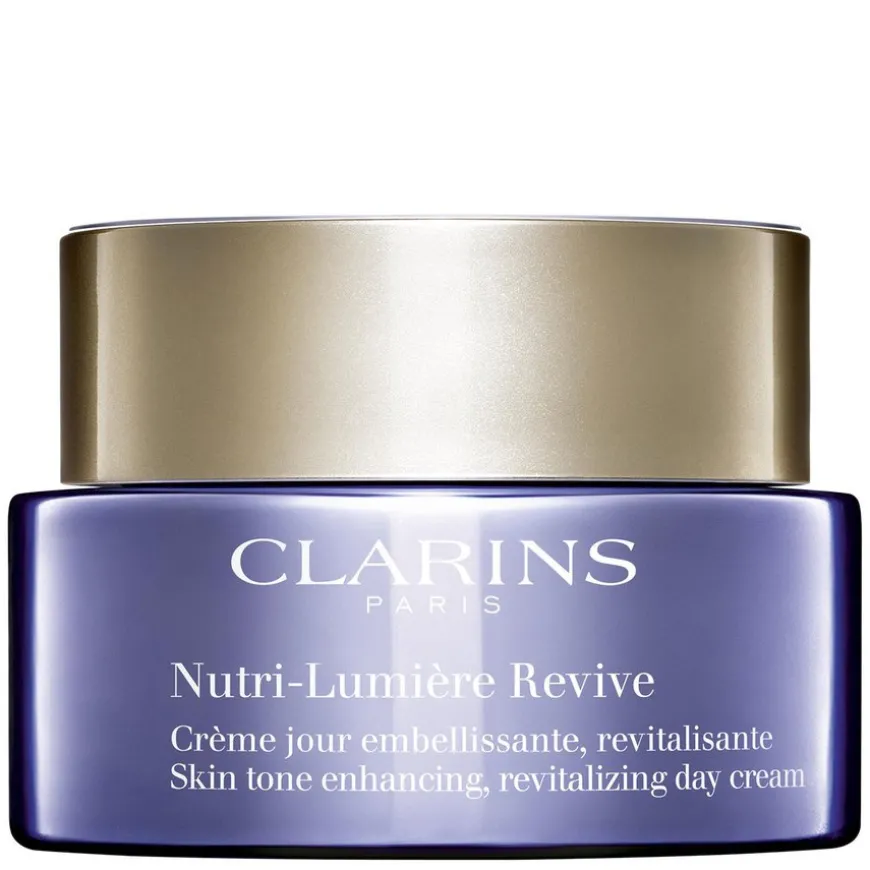 Nutri-Lumière Revive er en revitaliserende og intenst nærende dagkrem for kvinner 60+ som kan oppleve at huden føles underernært, gusten og gul, i tillegg til skjønnhetsbekymringer som tap av fasthet, linjer og rynker. Ved hjelp av persimmon ekstrakt og en lilla-tonet farge på kremen vil den optisk korrigere gultoner og tilføre glød. Clarins Laboratories har utviklet to aktive ingredienser for Nutri-Lumière – økologisk ekstrakt fra hestekastanjeblomsten og ekstrakt fra selve nøtten fra hestekastanjetreet. Denne sterke duoen maksimerer næringsopptaket i huden, og etterlater huden næret, komfortabel og glødende.