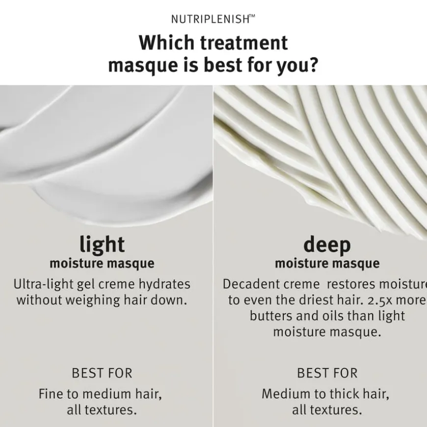 Nutriplenish Masque Light Moisture er en lett gelkrem hårmaske som gir intensiv fuktighet uten å tynge håret. Hårmasken tilfører næringsrik pleie med 4x mer hydrering* og gjenoppliver tørt, livløst hår med glans og smidighet. Formulert med Avedas Nutriplenish™ superfood-kompleks – en blanding av granatepleolje rik på omega-5, mykgjørende mangosmør og fuktighetsbevarende kokosnøttolje – som gir dyptvirkende næring og mykhet. Den lette teksturen gjør den ideell for fint til middels hår og er trygg å bruke på fargebehandlet og kjemisk behandlet hår. 98 % naturlig fremstilt*, vegansk og med Avedas signatur Pure-Fume™ aroma med kakao, økologisk ingefær og kardemomme.