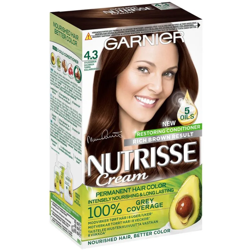 Nutrisse Cream fra Garnier tilbyr et bredt spekter med permanente hårfarger i nyanser fra svart til ekstra lys blond. Hårfargene er glansfulle og holdbare og ser naturlige ut, og de fleste dekker grå hår 100%. Blant nyansene finnes også spesialkolleksjoner som f.eks. The Nudes, Magnetic Coppers, Sparkle Browns og Pearly Blondes. Finn din yndlingsnyanse blant mange mulige…