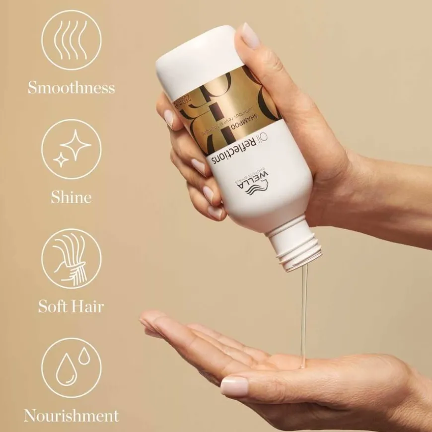 Wella Professionals Oil Reflections Luminous Reveal Shampoo er en shampoo som er utviklet for å rengjøre håret i dybden med en strålende effekt. Denne profesjonelle shampoo rengjør ikke bare hår og hodebunn intensivt, men holder også håret fuktet. Den lette formelen i denne Oil Reflections-shampoo gir også håret en fantastisk glans. Passer til alle hårtyper, bruk sammen med Wella Professionals Oil Reflections Luminous Reveal Conditioner for best resultat. Din shampoo for å glatte ut tørt og trist hår.