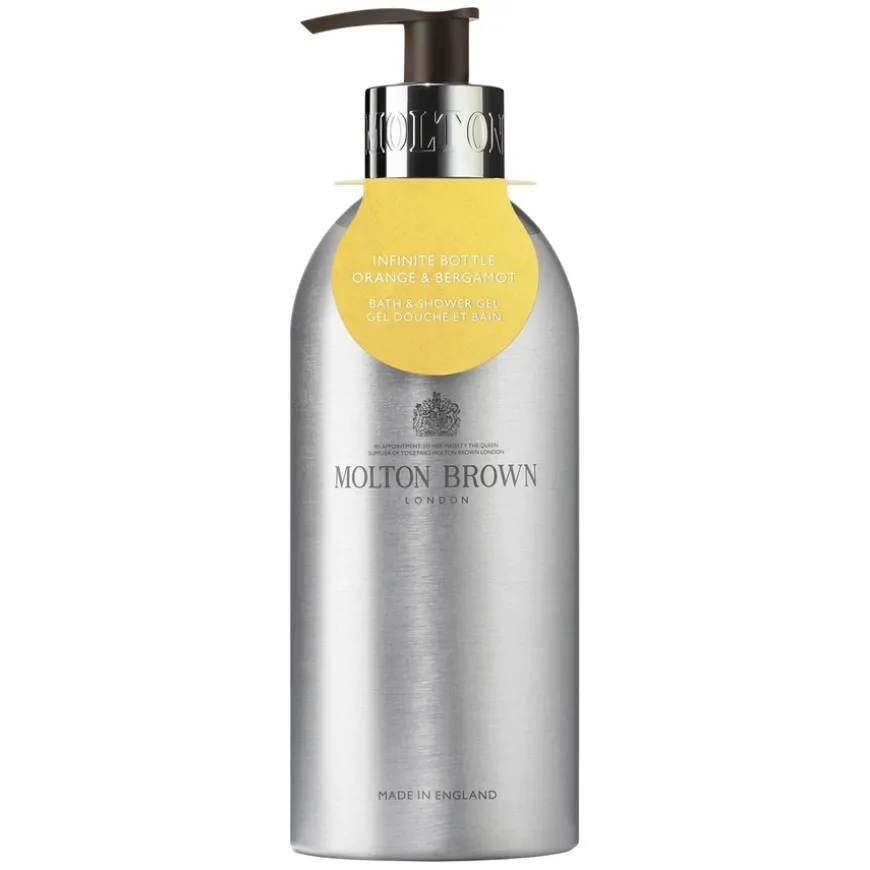 Molton Brown Infinite Bottle Orange & Bergamot Bath & Shower Gel gir baderitualet ditt det lille ekstra, med sprudlende, oppløftende noter av frisk appelsin, blomstrende neroli og dvelende musk. Denne ikoniske dusjgelen rengjør huden og etterlater den deilig velduftende.