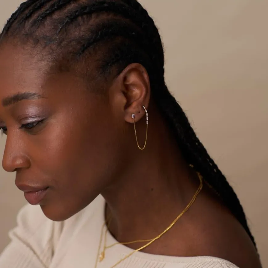 Baguette Fine Chain Link Earring er en elegant og moderne øredobb med baguette-slipte cubic zirkonia-krystaller.