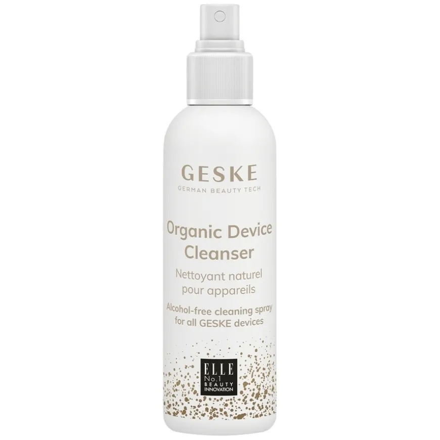 Organic Device Cleanser er en skånsom og effektiv rengjøringsspray utviklet spesielt for å holde dine GESKE-enheter rene og hygieniske etter hver bruk. Med sin alkoholfrie, veganske og parfymefrie formulering rengjør den uten å skade silikon, metall eller annet materiale. Sprayflasken gjør påføringen rask og enkel – spray, vent i 30 sekunder, tørk av og la enheten lufttørke. Rengjøring beskytter ikke bare apparatet, men er også viktig for hudens helse. Produktet inneholder naturlige ingredienser og er fargefri, noe som gjør det ideelt for daglig bruk sammen med alle GESKE SmartAppGuided™ skjønnhetsverktøy.