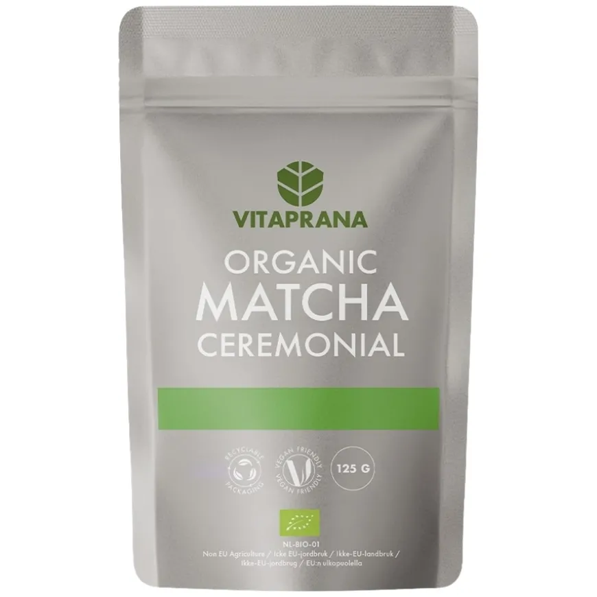 Matcha Ceremonial er et økologisk matchapulver laget av nøye utvalgte grønne teblader som er dyrket i skyggen de siste tre ukene før innhøsting. Dette bidrar til et høyt innhold av klorofyll og aminosyrer, som gir matchaen sin karakteristiske grønne farge og milde smak. Pulveret er 100 % rent, uten tilsetningsstoffer, og egner seg like godt til tradisjonell te som i kalde retter som smoothies og bowls. Matcha er kjent for sine antioksidanter og oppkvikkende egenskaper, og er perfekt for deg som ønsker et naturlig energiløft og en balansert start på dagen.