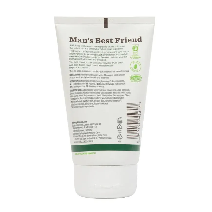 Original Face Scrub er en ansiktsskrubb for men, med 99 % naturlige ingredienser og er utviklet for å gjøre huden dypt rengjort og eksfoliert. Ansiktsskrubben inneholder søtmandelskall, en naturlig fremstilt skrubb, for dyprengjøring og eksfoliering. Den inneholder også Aloe Vera, kjent for sine gjenfuktende og roende egenskaper.