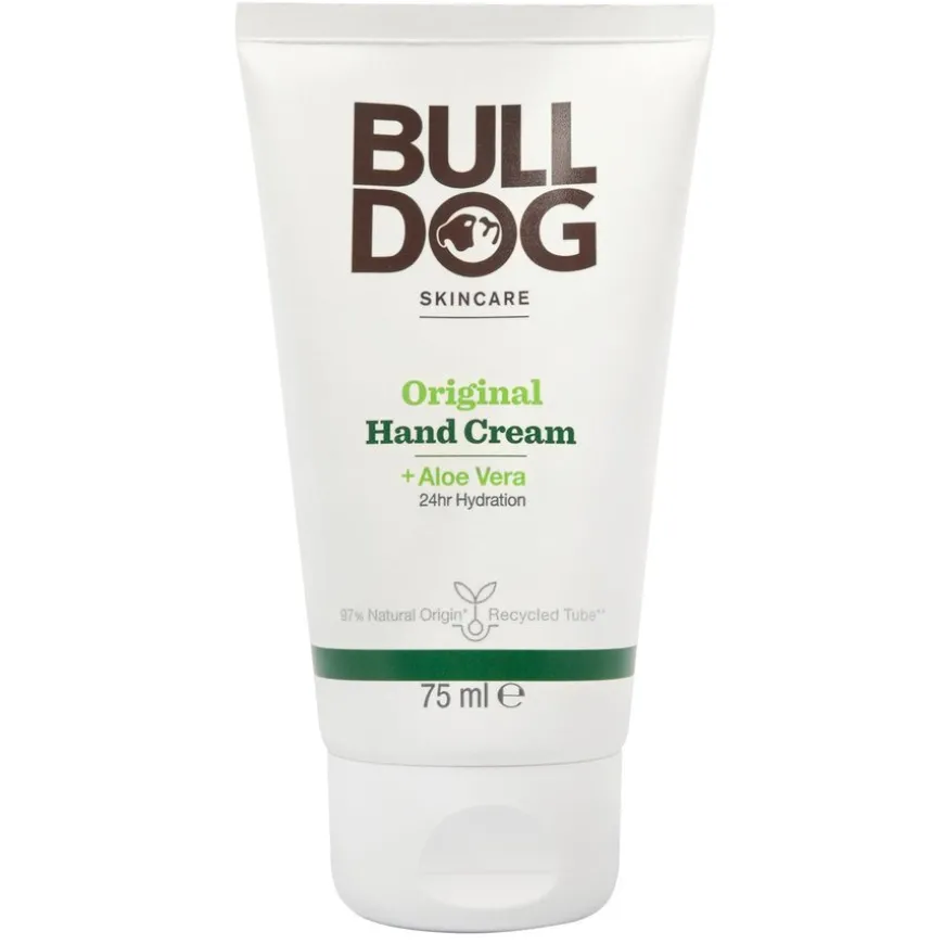 Bulldog Original Hand Cream er en håndkrem for menn, med 97 % naturlig ingredienser. Håndkremen er utviklet for å gi gjenfukting hele dagen og få hendene til å føles myke og beriket med næring. Produktet inneholder blant annet Aloe Vera, kjent for sine gjenfuktende og roende egenskaper. Passer normal til tørr hud. Absorberes lett av huden og føles ikke fet eller klebrig.