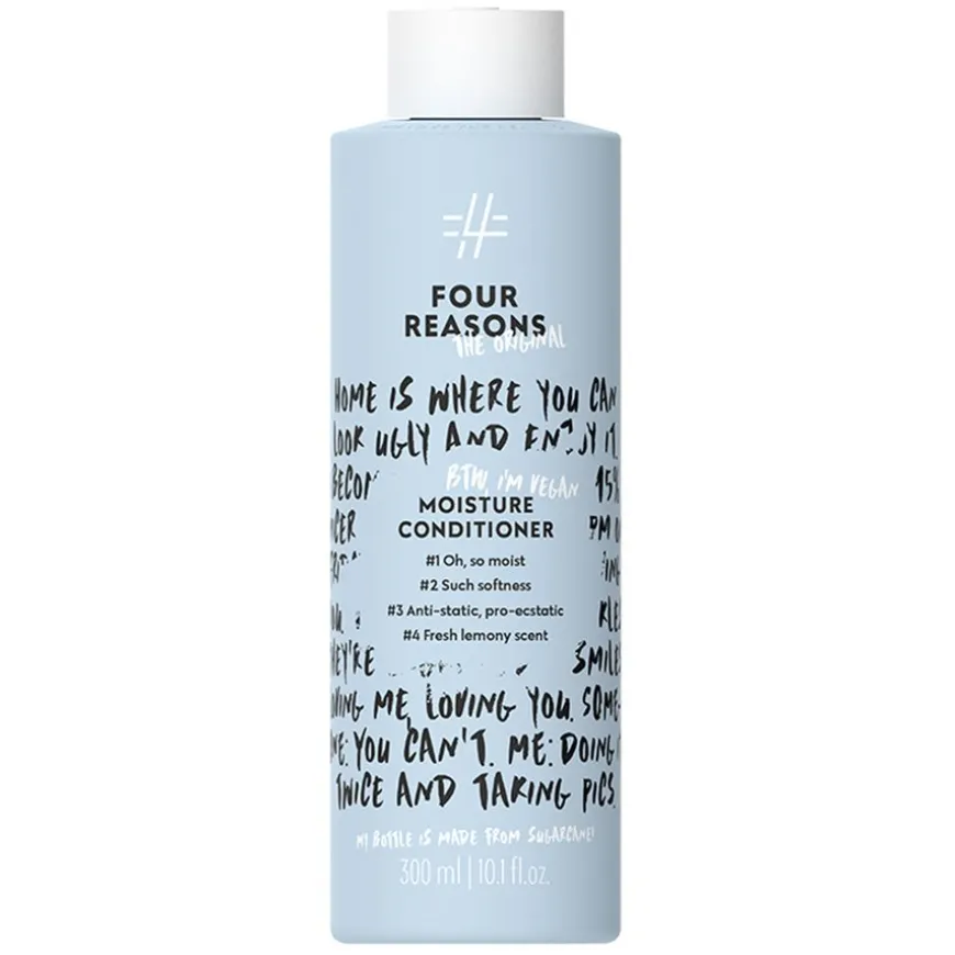 Four Reasons Original er et komplett sortiment hårpleieprodukter i resirkulerbare pakninger. Produktene er 100 % veganske og inneholder ingen animalske bestanddeler. Alle plastforpakninger består av resirkulerbar, biobasert sukkerrørplast, noe som reduserer produktenes karbonavtrykk betydelig.