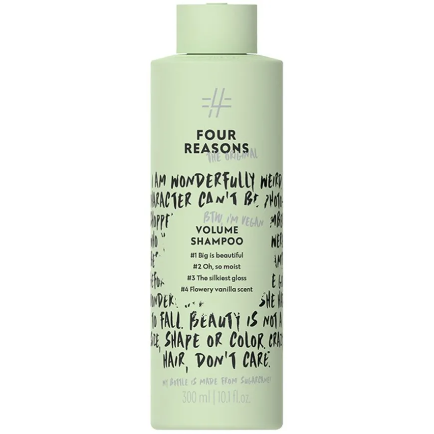 Four Reasons Original er et komplett sortiment hårpleieprodukter i resirkulerbare pakninger. Produktene er 100 % veganske og inneholder ingen animalske bestanddeler. Alle plastforpakninger består av resirkulerbar, biobasert sukkerrørplast, noe som reduserer produktenes karbonavtrykk betydelig.