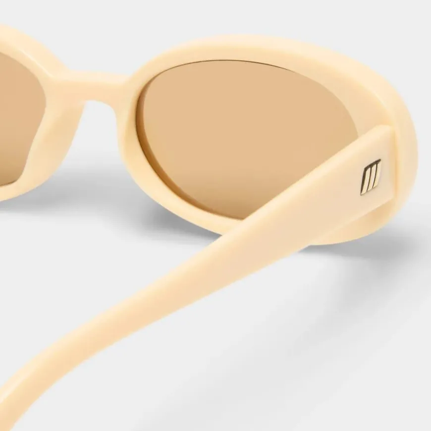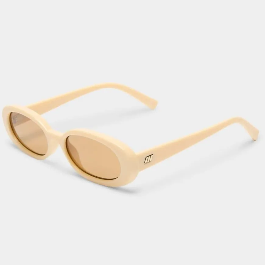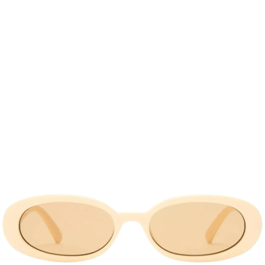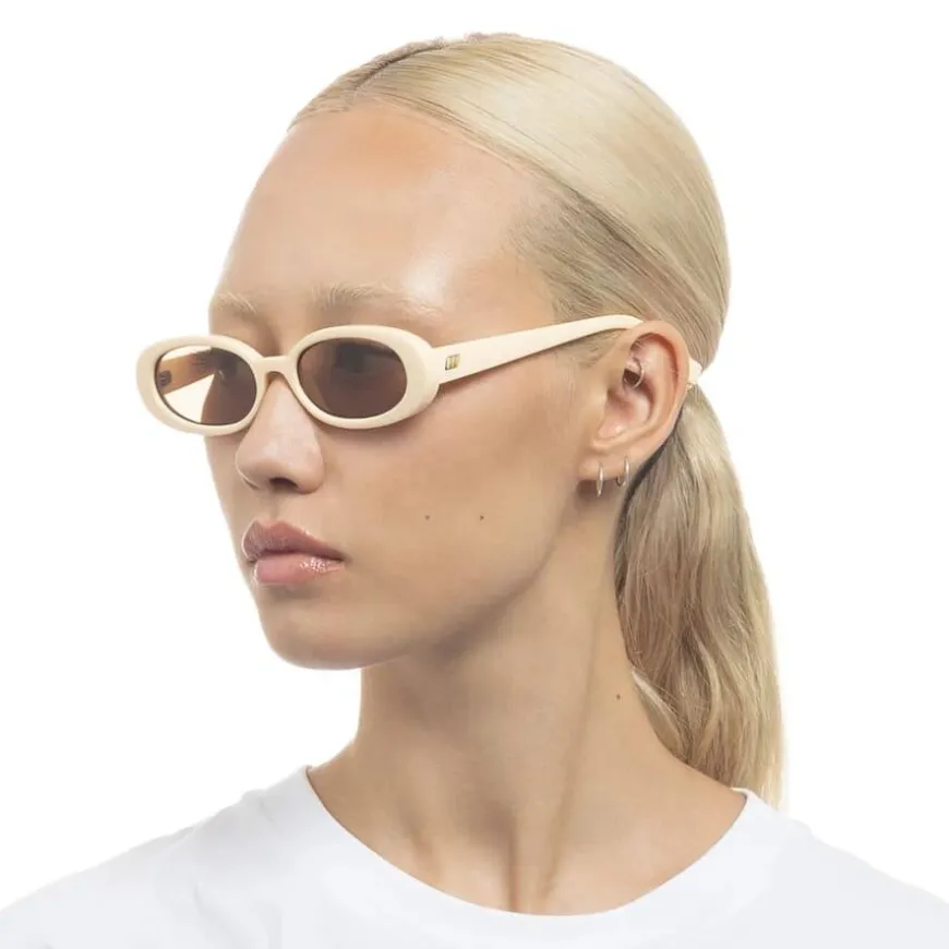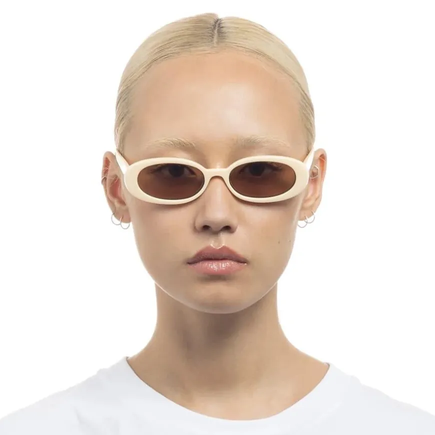 Le Specs Outta Love er en petite oval solbrille med en minimalistisk 90-tallsestetikk som utstråler stil og selvtillit. Den slanke profilen, den moderne flate fronten og den smale passformen gir en flatterende feminint uttrykk, mens de luksuriøse gullfargede Le Specs-detaljene på stengene tilfører en eksklusiv finish.
