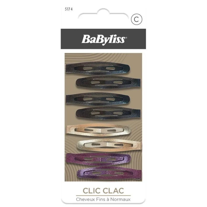 Oval Clip er ovale hårspenner i metall som passer godt til normalt hår. Hver spenne er 4,5 cm lang, noe som gir et godt grep og sikrer at håret holdes på plass. Pakken inneholder åtte klemmer i ulike farger: fire svarte, to sølv og to lilla, som gir mulighet for variasjon og stil.