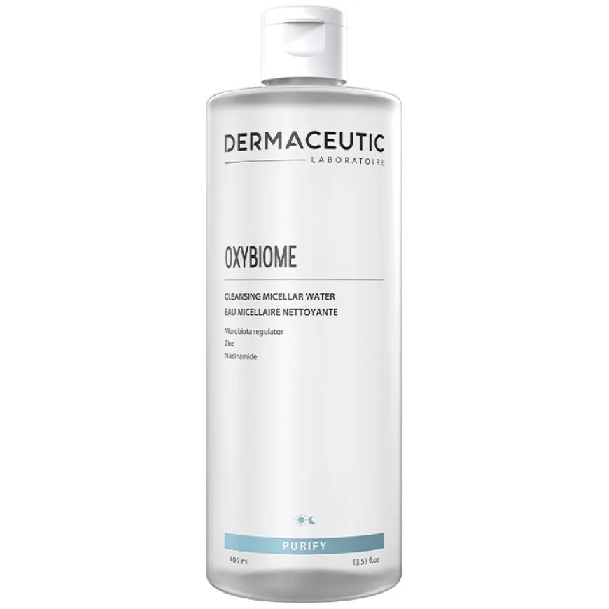 Oxybiome er et micellærvann som rengjør, balanserer hudens pH og fjerner makeup og smuss fra forurensing. Formuleringen støtter hudens naturlige mikrobiom og hjelper til med å berolige huden og redusere rødhet. Inneholder blant annet niacinamid og sinkglukonat som jevner ut hudtonen og minimerer synligheten av store porer.