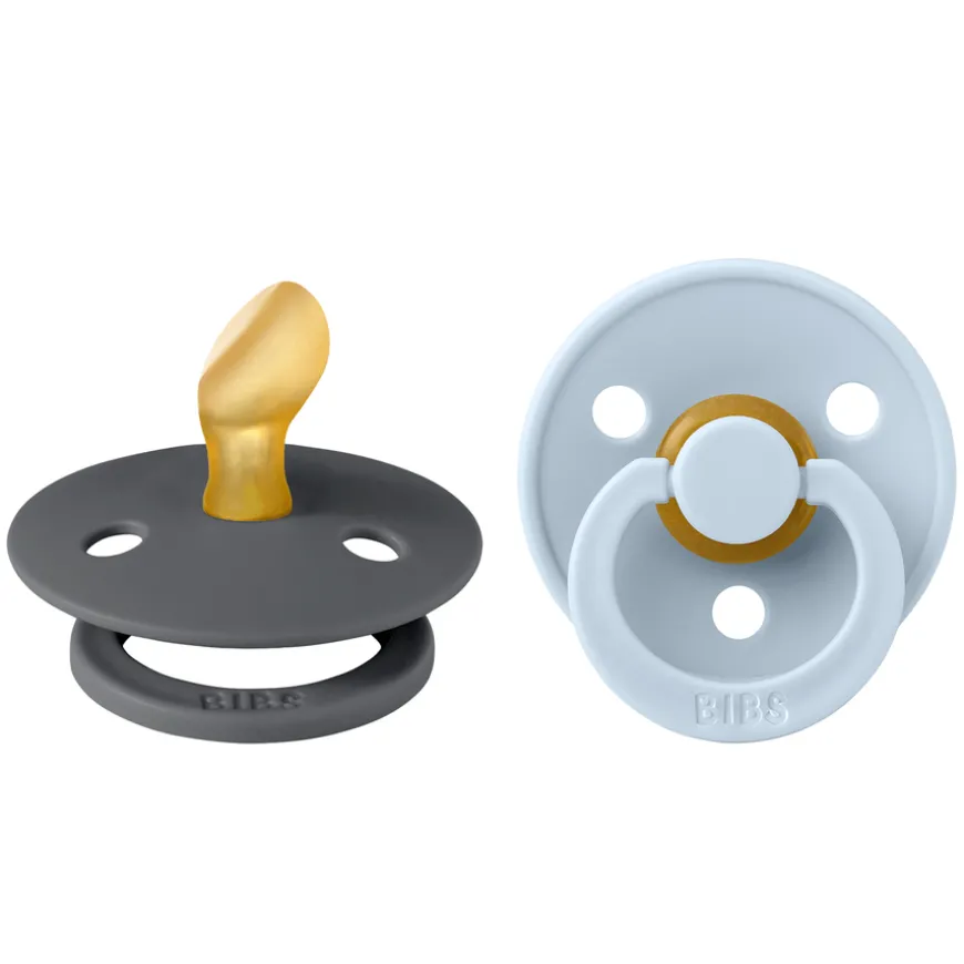Pacifier Colour Latex Anatomical er smokker med en ergonomisk sugedel i naturgummi. BIBS Colour-smokken er den originale BIBS-smokken og har vært på markedet i over 40 år. Den har det karakteristiske runde BIBS-skjoldet med tre ventilasjonshull og en rund BIBS-gravert håndteringsring.