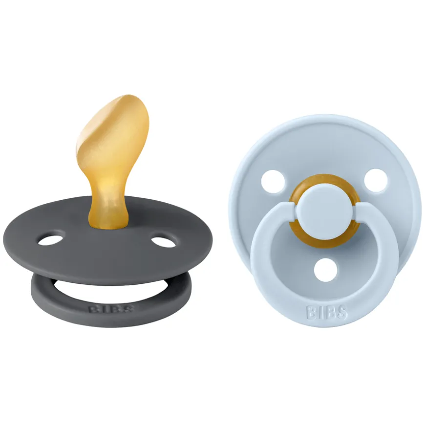 Pacifier Colour Latex Anatomical er smokker med en ergonomisk sugedel i naturgummi. BIBS Colour-smokken er den originale BIBS-smokken og har vært på markedet i over 40 år. Den har det karakteristiske runde BIBS-skjoldet med tre ventilasjonshull og en rund BIBS-gravert håndteringsring.