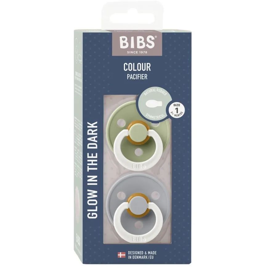Pacifier Colour Latex Anatomical Glow inneholder to smokker med en ergonomisk sugedel i naturgummi. Smokkene har det karakteristiske runde BIBS-skjoldet med tre ventilasjonshull og en rund BIBS-gravert håndteringsring. BIBS Colour Glow har samme høye kvalitet som de originale BIBS-smokkene, men kommer med en praktisk glødefunksjon. Glødefunksjonen gjør det enkelt for både foreldre og små å finne smokkene i mørket. Hold smokken opp mot en lyskilde i 5-10 sekunder for å aktivere effekten. Smokkene er 100% fri for BPA og ftalater. De er produsert og designet i Danmark og har den påkrevde europeiske EN 1400+A2-godkjennelsen.