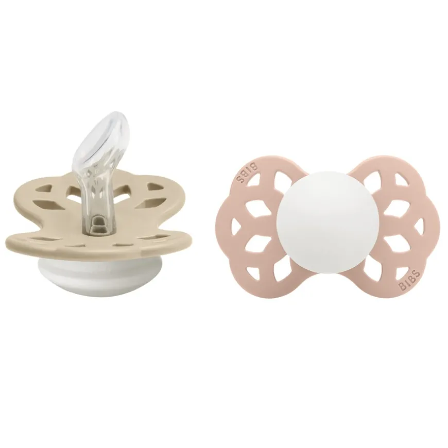 Skapt av sammenvevde uendelige sirkler, fremstår BIBS Infinity i et moderne og innovativt design. Infinity leveres med både en ergonomisk og en symmetrisk, flat dråpeformet nipple. Skjoldet er spesielt utformet for å sikre god luftsirkulasjon rundt munnen, slik at barnets sensitive hud blir skånet så mye som mulig. Skjoldet er laget av matvaregodkjent termoplast fri for BPA og ftalater. Designet og produsert i Danmark. Smokken er tilgjengelig i silikon og i to størrelser (size 1 og 2). Smokken overholder den europeiske standarden EN 1400+A2. Her får du to smokker i en pakke.