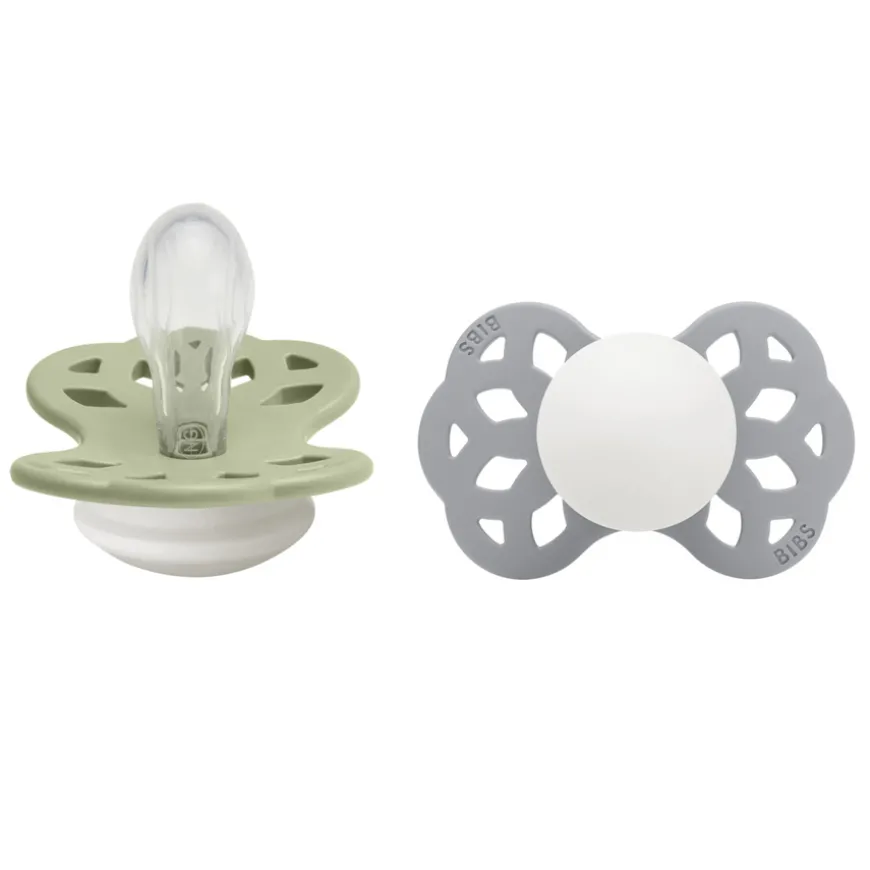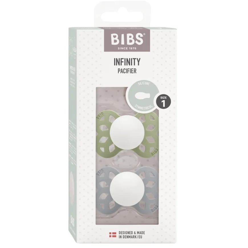 Skapt av sammenvevde uendelige sirkler, fremstår BIBS Infinity i et moderne og innovativt design. Infinity leveres med både en ergonomisk og en symmetrisk, flat dråpeformet nipple. Skjoldet er spesielt utformet for å sikre god luftsirkulasjon rundt munnen, slik at barnets sensitive hud blir skånet så mye som mulig. Skjoldet er laget av matvaregodkjent termoplast fri for BPA og ftalater. Designet og produsert i Danmark. Smokken er tilgjengelig i silikon og i to størrelser (size 1 og 2). Smokken overholder den europeiske standarden EN 1400+A2. Her får du to smokker i en pakke.