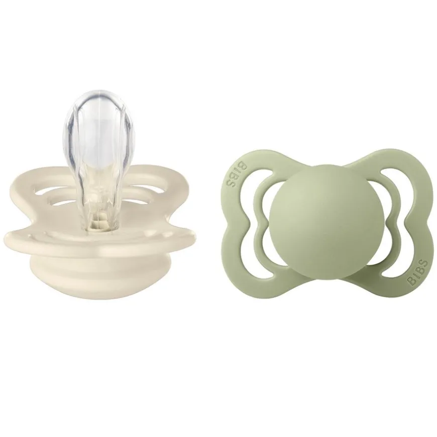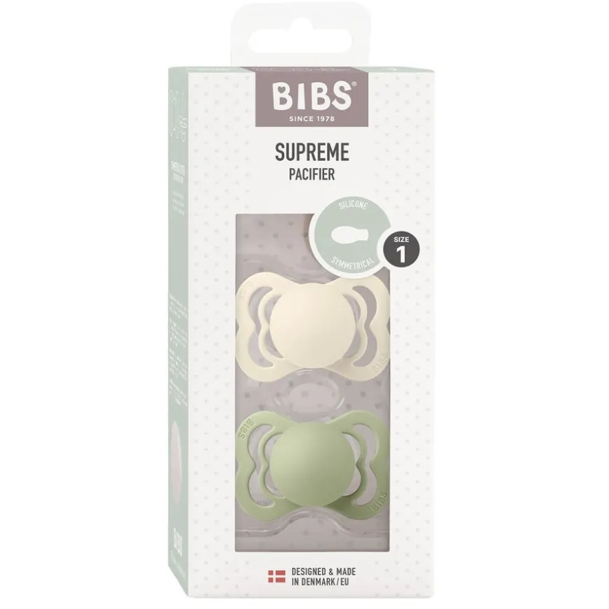 Pacifier Supreme Latex er BIBS eksklusive smokk med et bredt skjold og en symmetrisk, flat dråpeformet sugedel. Skjoldet er spesielt utformet for å sikre god luftsirkulasjon rundt munnen, slik at barnets sensitive hud blir skånet så mye som mulig. Skjoldet er laget av matvaregodkjent termoplast fri for BPA og ftalater. Designet og produsert i Danmark. Smokken er tilgjengelig i to størrelser (size 1 og 2). Smokken overholder den europeiske standarden EN 1400+A2. Her får du to smokker i en pakke.