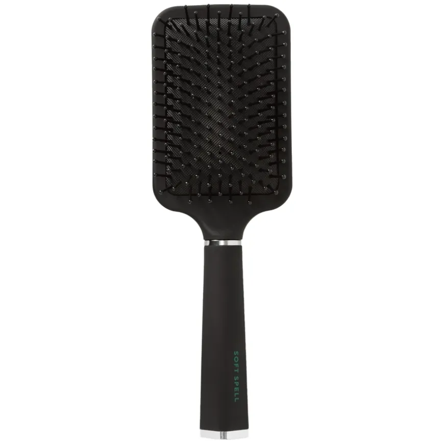 Soft Spell Paddle Brush er en paddelbørste med fleksibel luftpute designet for å skånsomt gre og effektivt glatte ut håret. Den myke luftputen tilpasser seg hodebunnen, noe som gir en behagelig og skånsom børsting. Denne børsten er ideell for alle hårtyper og reduserer slitasje mens den etterlater håret jevnt og blankt. Perfekt for daglig bruk og styling, og gjør hårbørstingen til en behagelig opplevelse.
