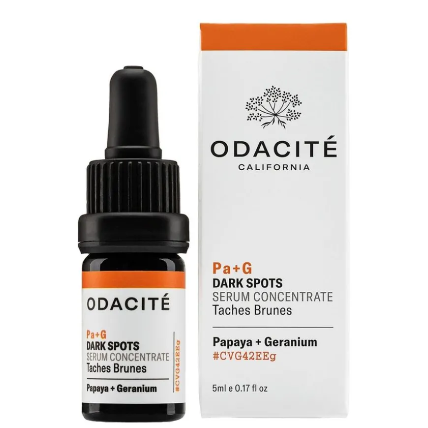 Pa+G Dark Spots Serum Concentrate Papaya & Geranium er et multiaktivt serumkonsentrat som hjelper til med å redusere synligheten av mørke flekker og forbedre utseendet på aldrende hud. Dette serumet er drevet av fruktenzymer fra kaldpresset papayafrøolje, som effektivt eksfolierer døde hudceller mens hudens delikate overflate bevares. Geraniumolje, kombinert med sitronolje, bidrar til å lysne hudtonen og skape et mer jevnt utseende. Den silkeaktige, lette ansiktsoljen absorberes raskt og etterlater en harmoniserende blomsterduft av geranium.