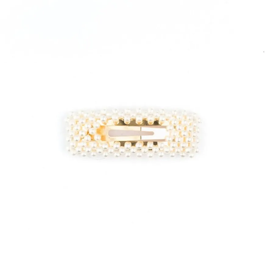Pearl Hair Clip Square Small er en hårklype med hvite imiterte perler. Perfekt som siste finish på frisyren.