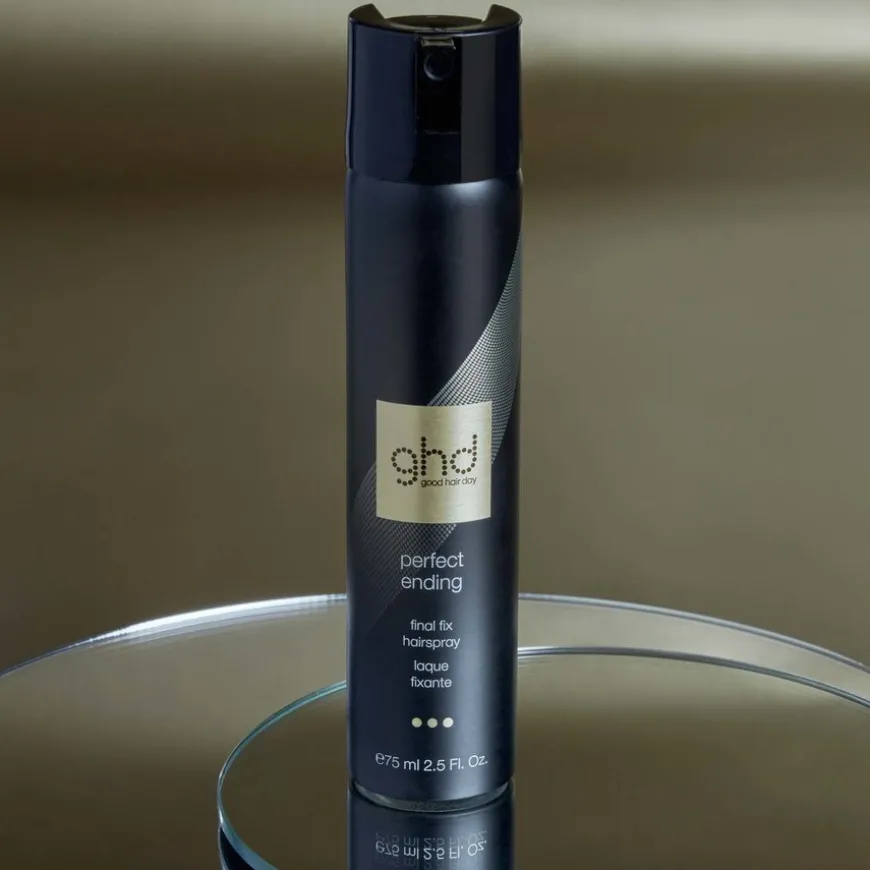 Hold stilen din på plass med ghd Perfect Ending – Final Fix Hairspray for profesjonelle sluttresultater på farten.