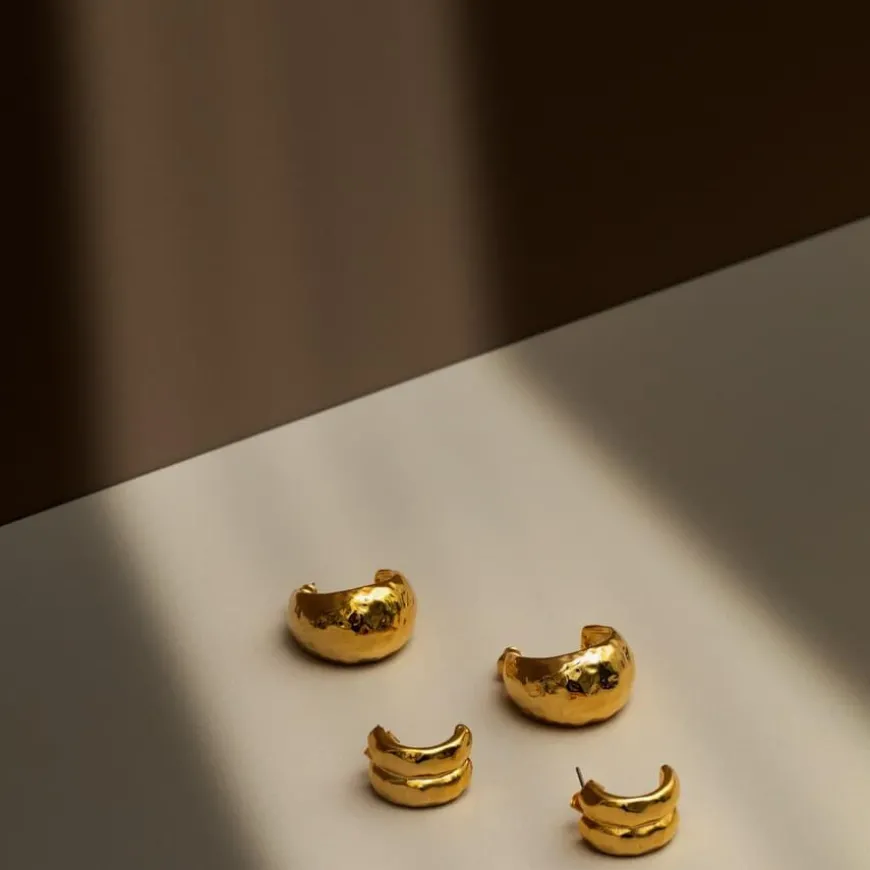 Med sin hamrede tekstur og elegante, polerte gullfinish, skaper de et stilfullt og moderne uttrykk. Passer til både fest og hverdag.