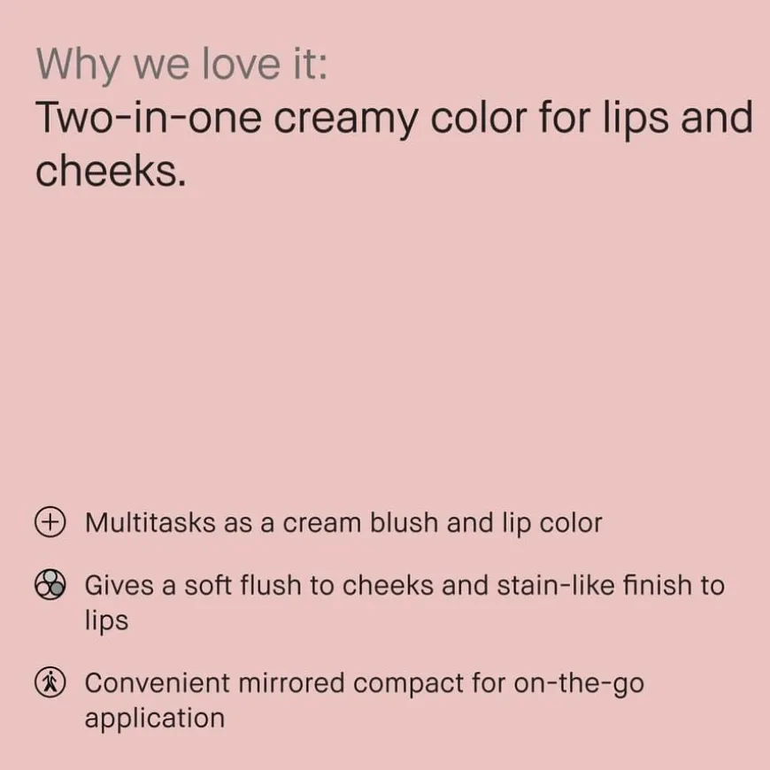 Pot Rouge ROSE er Bobbi Browns mest solgte, multifunksjonelle kremfarge for både kinn og lepper. Den kremete teksturen gir et naturlig fargestreif med medium dekkevne og en myk, frisk finish. Den praktiske flip-top-kompakten med speil gjør den perfekt å ha med på farten. Formelen smelter lett inn i huden og gir kinn og lepper en sunn glød. Advarsel: Kun til utvendig bruk. Oppbevares utilgjengelig for barn. Avslutt bruk ved irritasjon. Sjekk ingredienslisten på emballasjen for oppdatert informasjon.