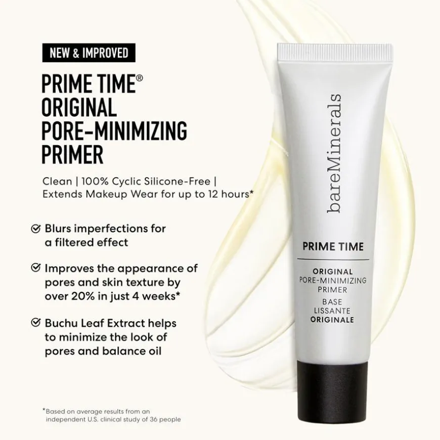 Prime Time Original Pore Minimizing Primer er en primer som forlenger varigheten av din makeup i opptil 12 timer!Primeren forbereder huden din før påføring av foundation. En Makeupbase matter ned, kontrollerer oljeproduksjonen i huden og minimerer ujevnheter. Med en silkeaktig gel tekstur blurres urenheter i huden og skaper en naturlig filtereffekt. Passer til alle hudtyper.