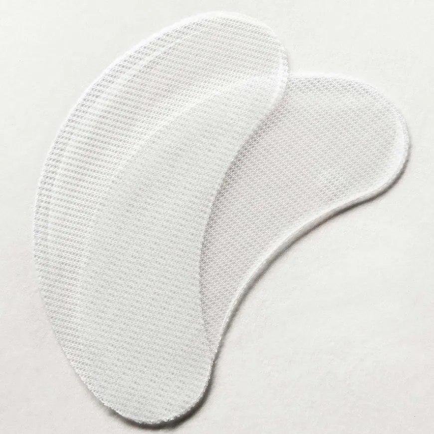- Trykk forsiktig gelmaskens klebrige side på området under øynene. Fjern den andre masken fra plastarket og plasser på området under det andre øyet.