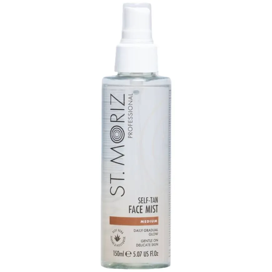 Professional Self-Tan Face Mist er en lett, klar bruning mist som ikke flekker. Den kan påføres over sminke eller direkte på huden og utvikler seg over 8 timer til en naturlig solkysset glød. Den er skånsom for sensitiv hud med tilsatte hudpleieingredienser som aloe vera og vitamin E som gjør huden myk og hydrert.