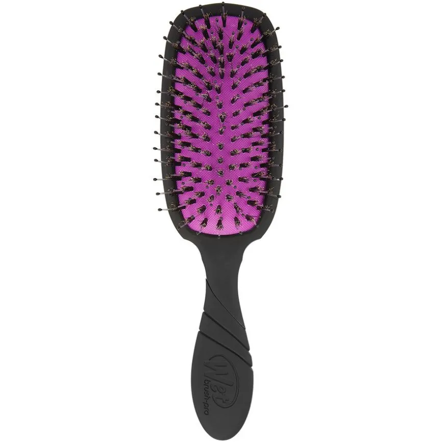 Pro Shine Enhancer Black er en glansbørste med et ergonomisk grep med en gummibelagt EasyGrip-overflate som gir bra grep selv med våte hender. Børsten består av både villsvinbust og en ekstra myk IntelliFlex-bust som fjerner floker og fordeler hårets naturlige oljer, og etterlater håret mykt og glansfullt. Børsten beskytter også håret mot brekasje og flisete tupper.