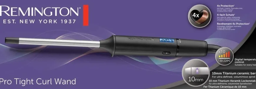 Remington Pro Tight Curl Wand er en krølltang designet for å lage faste ultradefinerte spiralkrøller.