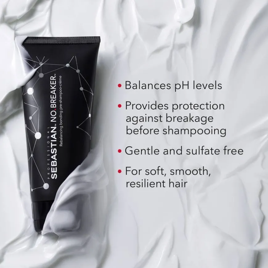 Sebastian Professional No.Breaker Rebalancing Bonding Pre Shampoo Creme er en skånsom sjampobehandling som beskytter håret mot brudd. Denne sulfatfrie rensen styrker håret mot brudd, balanserer pH-verdien og forbereder håret for reparasjon. Sebastian Professional No.Breaker Pre Shampoo gjør håret mykt, glatt og motstandsdyktig.