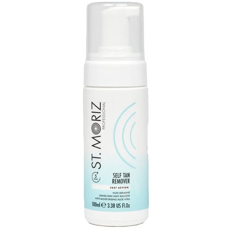St. Moriz Professonal Self Tan Remover Foam fjerner effektivt og skånsomt brunfarge uten solrester uten å måtte skrubbe. Aloe Vera hjelper til med å fukte huden mens brunfargen forsvinner, huden er herlig fuktet og fri for brunfarge uten solrester.