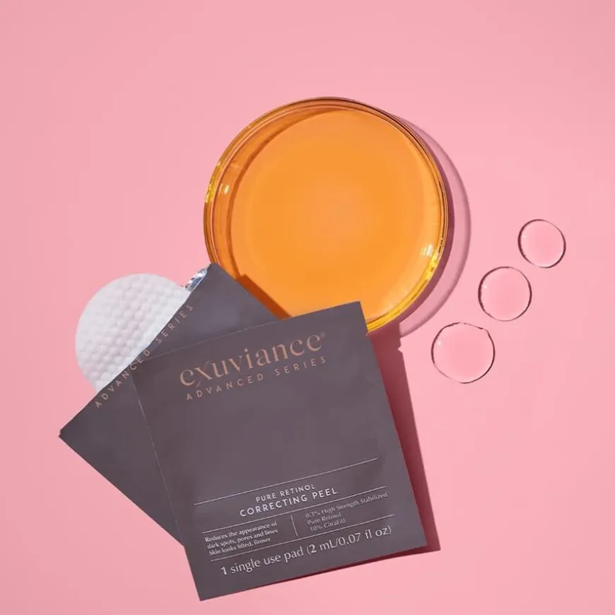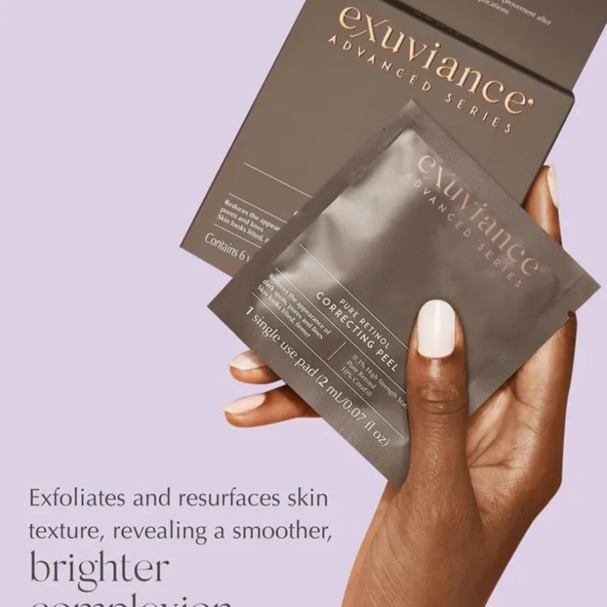 Pure Retinol Correcting Peel er en kraftfull hjemmebehandling med 0,3 % stabilisert retinol, utviklet for å fremme cellefornyelse og forbedre hudens struktur og glød. Denne ukentlige peelingen minimerer fine linjer, rynker og pigmentering, samtidig som den gir økt spenst og en jevnere hudtone. Formelen er beriket med Exuviances patenterte CitraFill®, som støtter hudens egen kollagenproduksjon for fastere og mer volumisert hud. Denne behandlingen er ideell for moden hud, hud med akne eller ujevnheter, og for deg som ønsker en effektiv, resultatorientert peeling med profesjonell styrke – men hjemme i egen komfort.