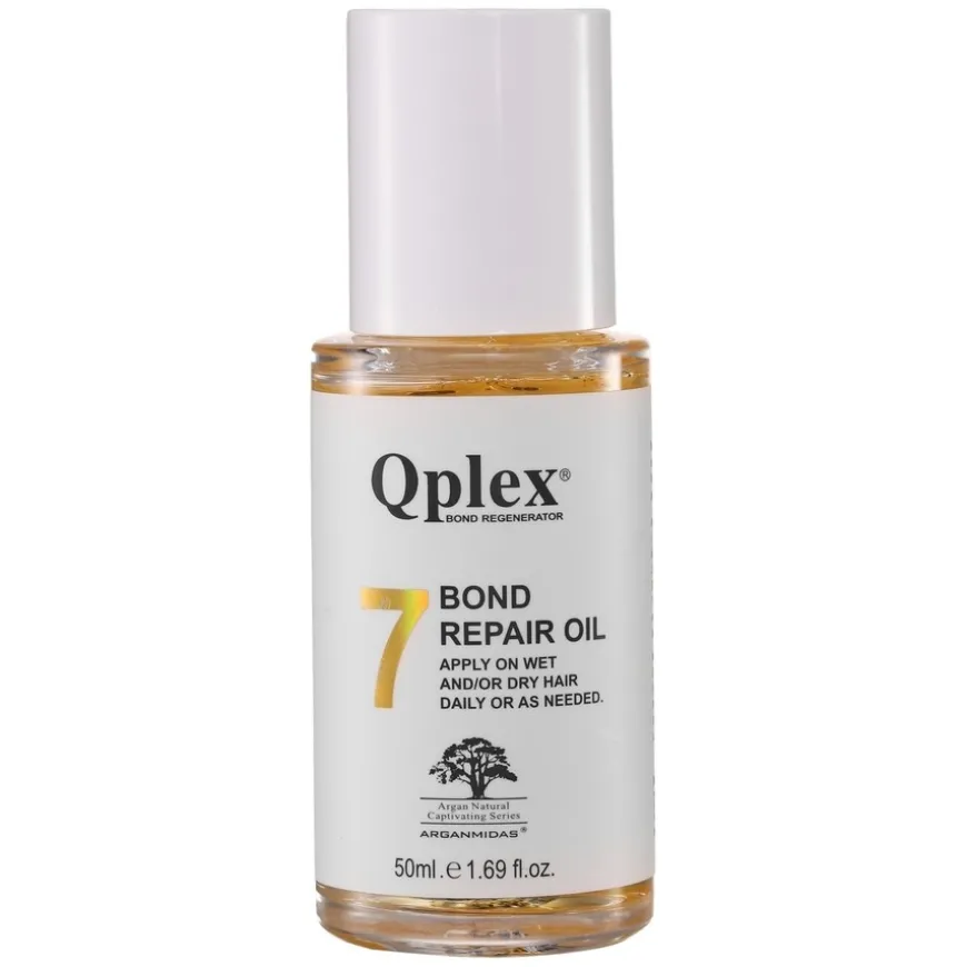 Arganmidas Qplex No.7 Bond Repair Oil – Denne ultralette, ultrakonsentrerte reparerende håroljen er formulert med rosmarinbladolje og unik Qplex® Bonding Technology for å jevne ut flyktig hår, tilføre fløyelsmykhet og pleie. Reduserer krus, reduserer brudd og gir håret mer glans samtidig som den beskyttes mot varme.