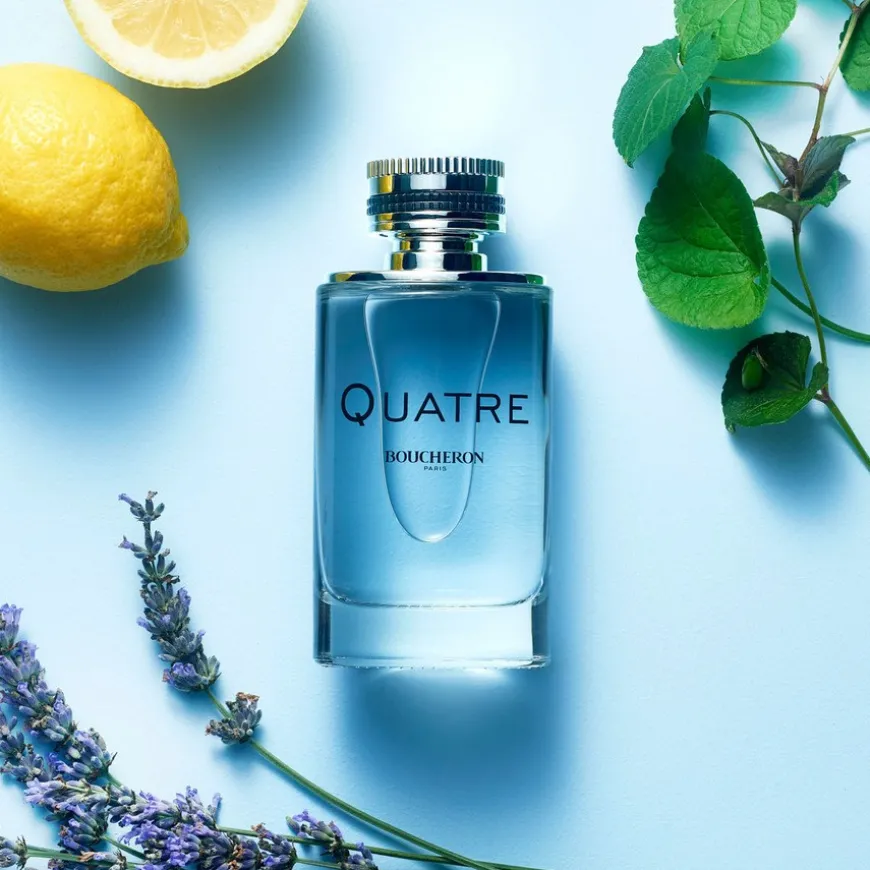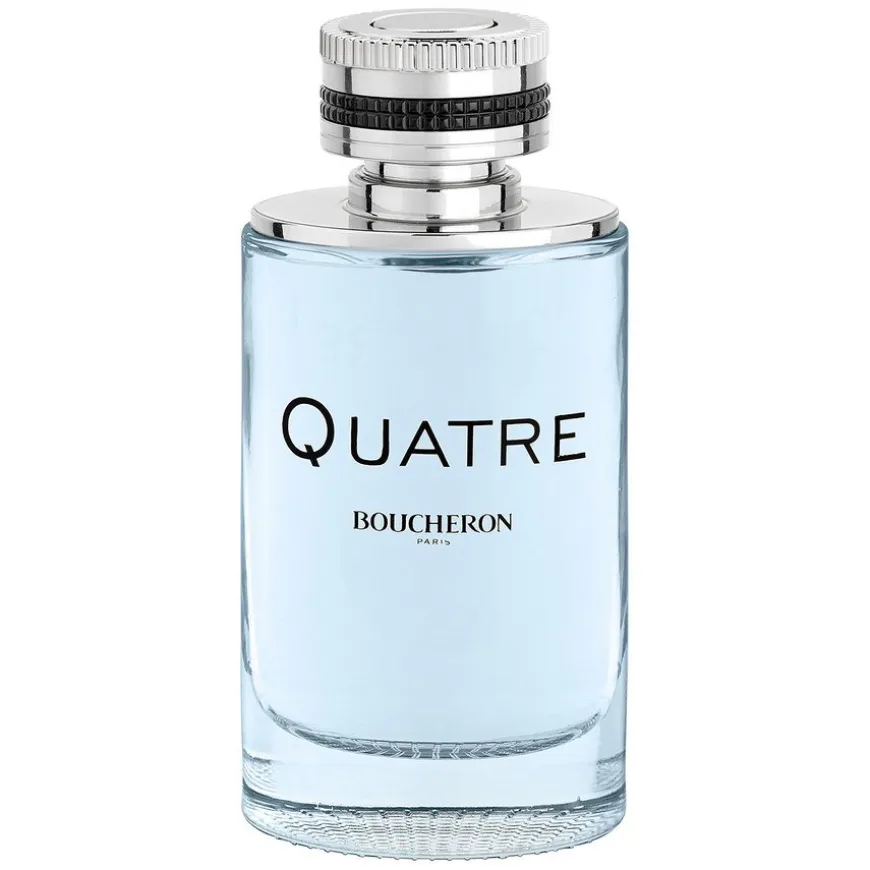 Boucheron Quatre Homme Eau de Toilette har moderne floralske notene av lavendel og geranium som gir en fantastisk eleganse. I bunnotene vil patsjuli og drivved tilby en fascinerende kontrast mellom mystikk og renhet som virker som en refleksjon av tiltrekningskraften mellom to mennesker.