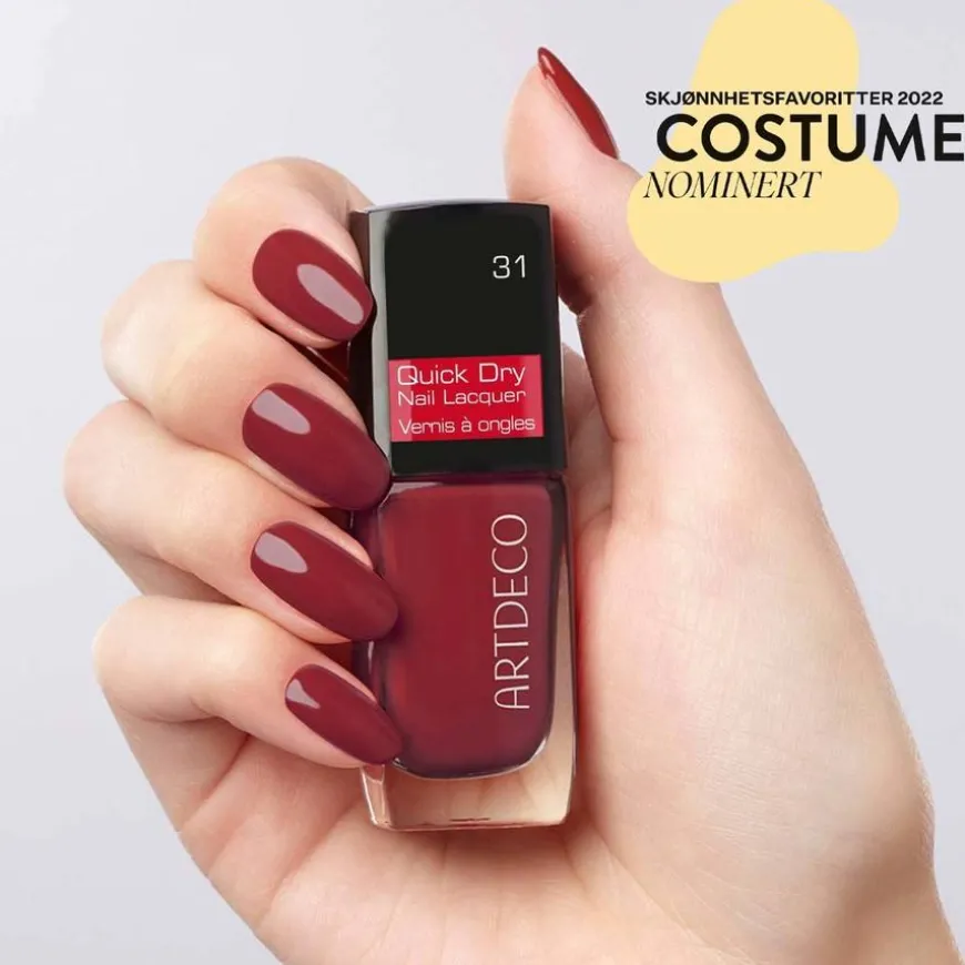 Artdeco Quick Dry Nail Lacquer er en innovativ og helt ny type lakk fra Artdeco som tørker på et blunk, som gjør den genial å benytte når du har det travelt! Den er enkel å påføre, finnes i et stort utvalg tidløse og moderne farger og gir et jevnt og fint resultat. Formulaen inneholder spirulina-alger som igjen inneholder en rekke proteiner, mineraler og vitaminer.