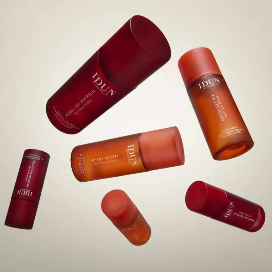 Ready Set Fix Setting Spray fra IDUN Minerals er en ultra-fikserende settingspray som sørger for at sminken holder seg perfekt fra morgen til kveld. Den lette, non-stick formelen gir en naturlig glød og smelter sminken sømløst sammen for et jevnt resultat. Sprayen er 100% vegansk, parfymfri og dermatologisk testet, noe som gjør den trygg selv for sensitiv hud. Den resirkulerbare flasken er laget av 100% resirkulert PET, mens pumpe og lokk er i PP-plast – utviklet med fokus på bærekraft i nært samarbeid med lokal produksjon i Italia. Perfekt som et siste steg i sminkerutinen, eller for å friske opp looken i løpet av dagen.