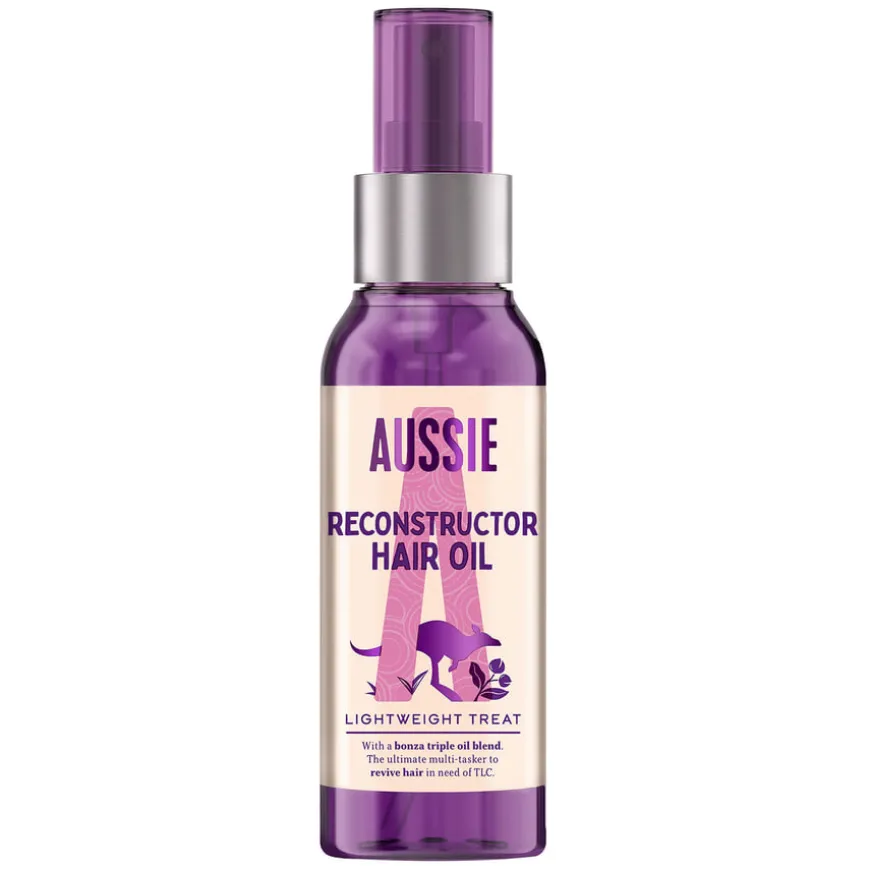 Reconstructor Hair Oil fra Aussie er en lett og allsidig hårolje som gir nytt liv til tørt og skadet hår. Den veganske og dyrevennlige formelen inneholder en trippelblanding av australsk makadamianøttolje, jojobaolje og avokadoolje, som reparerer, glatter og gir håret en naturlig glans uten å tynge det ned. Med sin søte og forfriskende duft, etterlater den håret mykt, skinnende og velduftende. Denne multitaskeren kan brukes på tre måter: før hårvask for næring, på fuktig hår for å gjøre det glattere, eller på tørt hår for optimal glans. Perfekt for daglig pleie og hår som trenger ekstra omsorg.