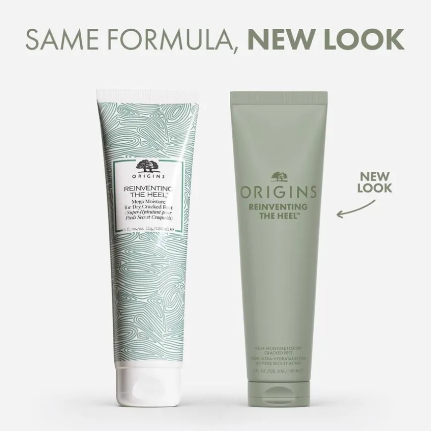 Reinventing The Heel Mega-Moistue for Dry, Cracked Feet er en fotkrem fra Origins. Når det føles som om du har gått for mange kilometer i dine egne sko, så skjem deg selv bort. Denne tykke kremen lindrer fotsålene dine med en rikdom av rosenfrukt og jojoba olier. Super-hamskifteren salicylsyre hjelper mot irriterende ru hud. Mykgjørende Shea Butter jevner ut sprekker og setter føttene tilbake på Easy Street. Og forfriskende menthol gir et forfriskende spark.