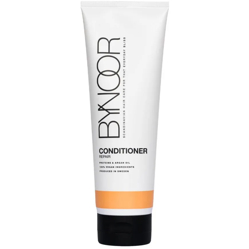 ByNoor Repair Conditioner er en reparerende balsam som hjelper til med glatte ut håret uten å tynge hårstrået. ByNoor Repair Conditioner har et hydrolysert vegetabilsk protein som tilfører styrke til håret mens arganolje gjør det ekstra mykt. Resultatet er et skinnende, mykt hår som både ser og føles friskt ut.