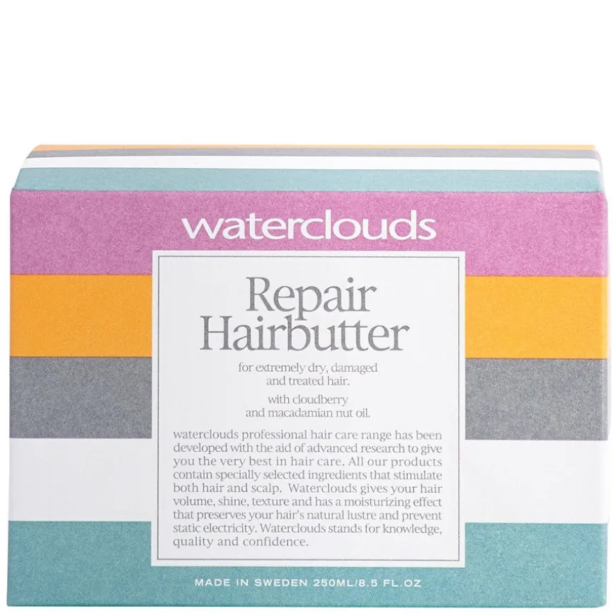 Repair Hairbutter er en dyptvirkende hårmaske for ekstremt tørt, skadet og behandlet hår som gjør håret mykt og glatt uten å tynge det ned. Multe og macadamiaolje gjenfukter håret og hodebunnen og gir håret en blank overflate med fantastisk glans.Provitamin B5 binder fukt og beskytter håret mot uttørring.