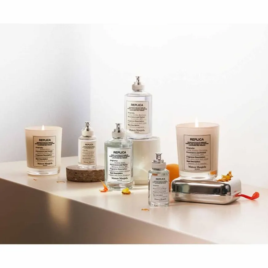 I 1994 introduserte Maison Margiela de første Replica-moteplaggene: plagg og tilbehør håndplukket over hele verden og omhyggelig gjengitt, slik at de bevarer sin karakter og sjarm. Hver del har en spesiell etikett på innsiden som beskriver kilde og periode for originalvaren. I 2012 utvidet Maison Margiela dette unike konseptet med en kolleksjon av parfymer som gjenskaper luktene som minnene dine er laget av. Deretter fulgte en samling duftlys. Replica-kolleksjonen samler ikoniske dufter og duftlys som har den universelle kraften til å trigge personlige dyrebare øyeblikk og vekke følelser.