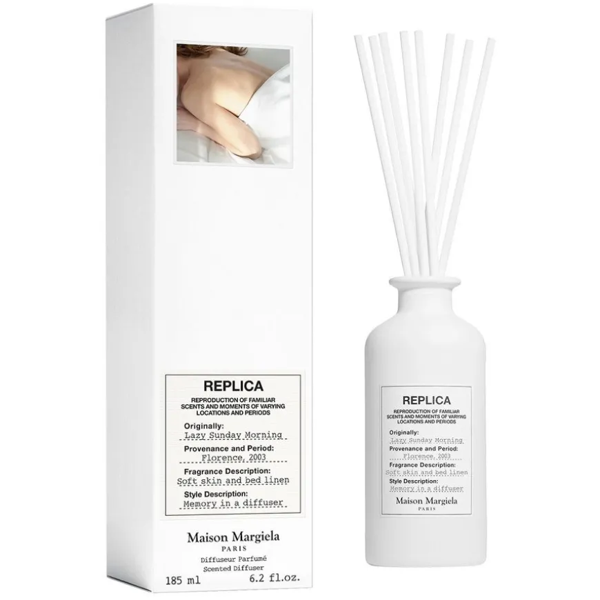 Maison Margiela Replica Diffuser Lazy Sunday Morning gir deg den omsluttende følelsen av nyvaskede bomullslaken, mens sollyset skånsomt varmer huden din. Stemningen som skapes av denne diffuseren er rolig og ren, som en invitasjon til egenpleie og ro.