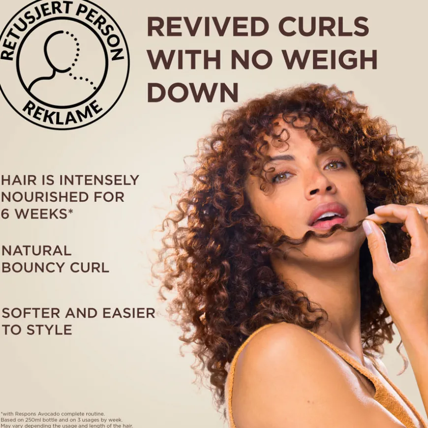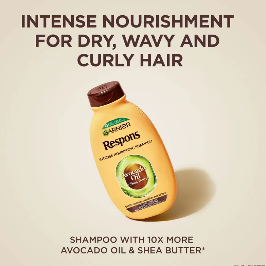 Respons Avocado Oil & Shea Butter er en shampoo som har en vegansk formel* som er beriket med fuktighetsgivende avocadoolje og sheasmør. Den fyldige formelen pleier og glatter ut tørt og krusete hår. Etterlater håret ditt mykt og revitalisert. Laget av 100 % resirkulert plast** og er 100 % resirkulerbar.